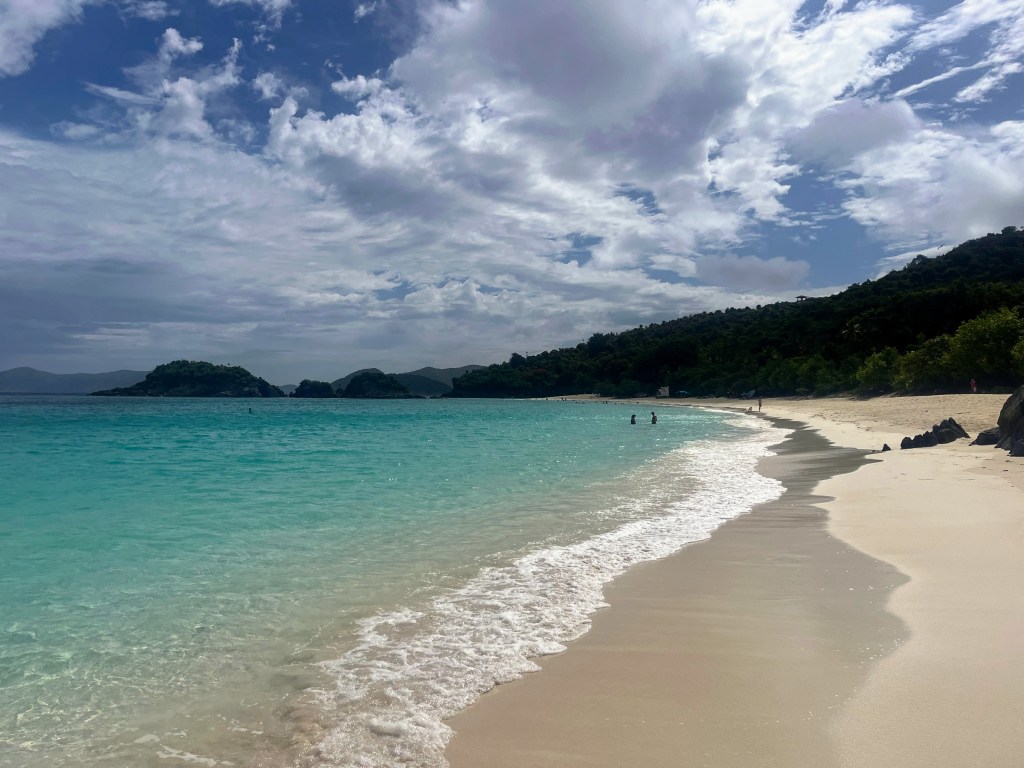 - Trunk Bay– Located within the National Park Service, Trunk Bay is consistently named as one of the most beautiful beaches in the Caribbean and is the most photographed and recognizable beach on the island! With over a quarter mile of white sand beaches, calm turquoise waters, and natural shade from the mangrove and sea grape trees, Trunk Bay lives up to the hype! Trunk Bay also features an underwater snorkeling trail with information about the sea life that you will find there. Facilities include restrooms, equipment rentals, picnic tables and plenty of food options.
